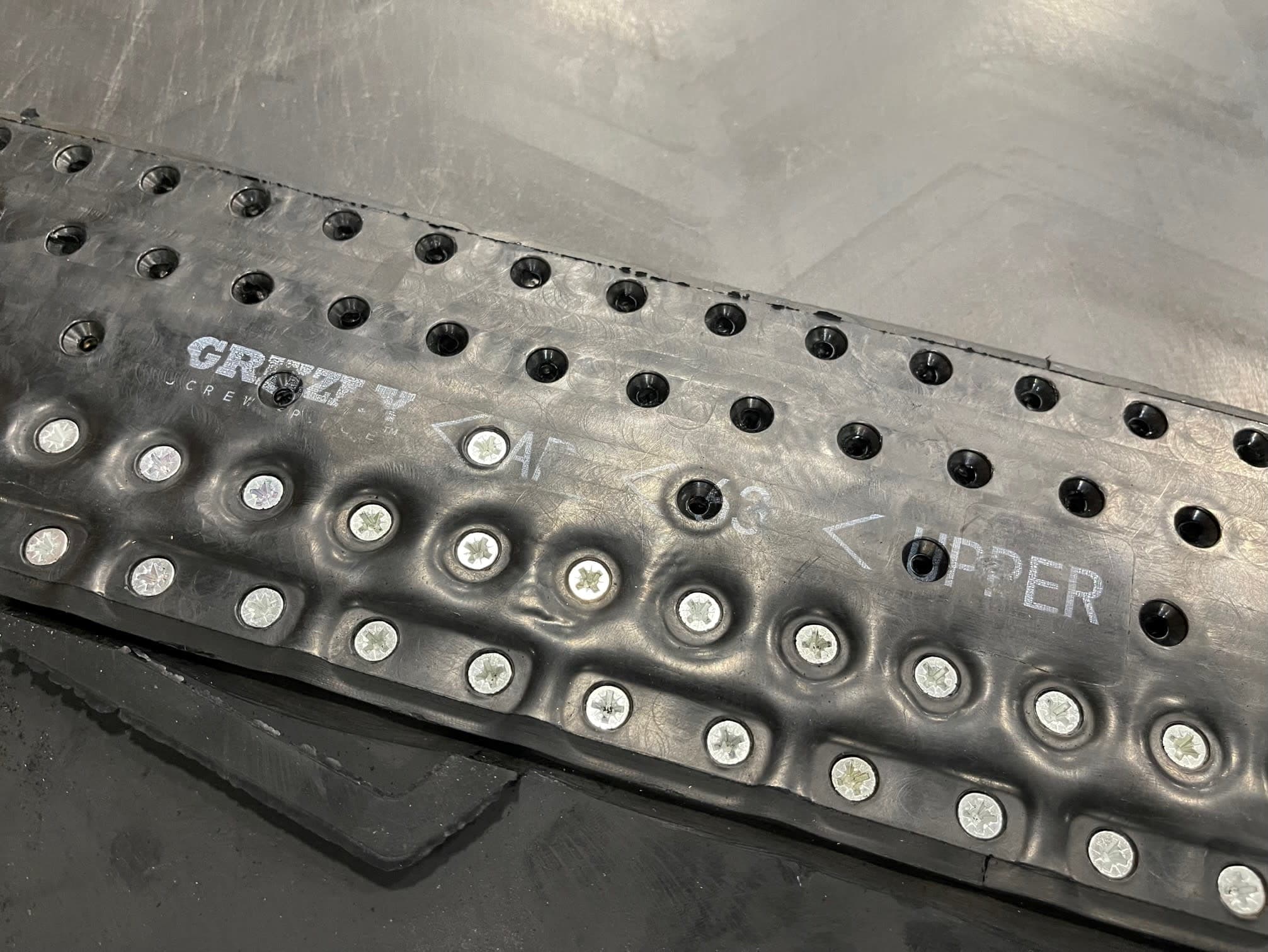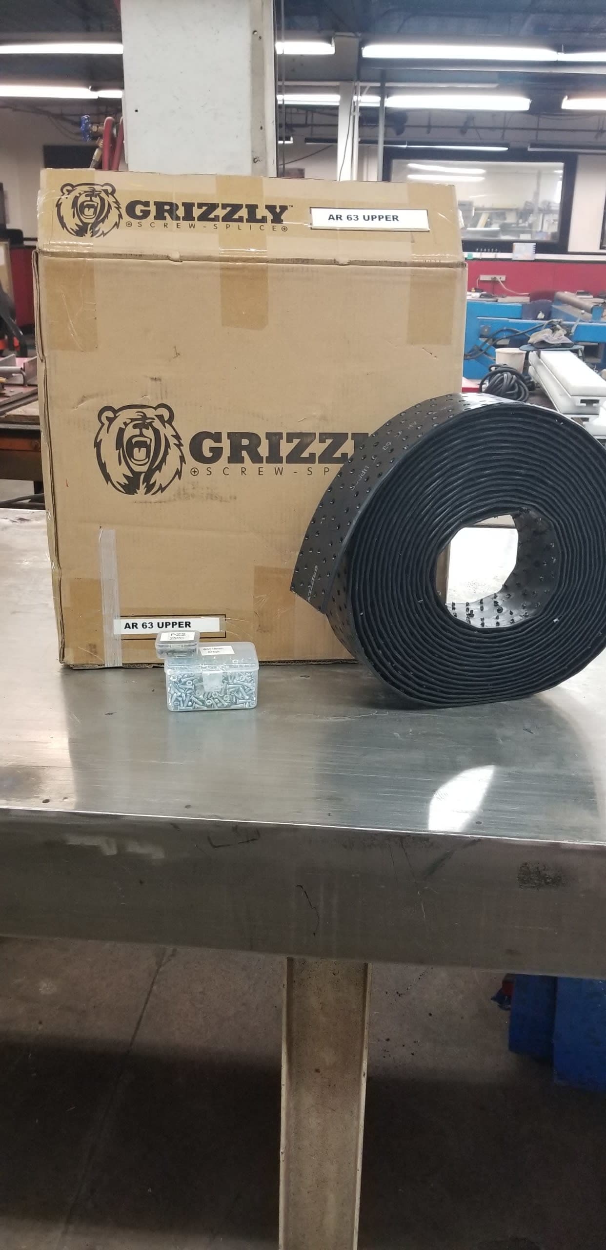The Grizzly™ Screw-Splice is pre-assembled with the spacers installed, so that the top cover and the bottom cover holes lineup. The Grizzly™ Screw-Splice is delivered with the appropriate number of screws and PZ bits to install the screw splice (matched by inches ordered). It is available in any length between 12 inches up to the length of a roll.